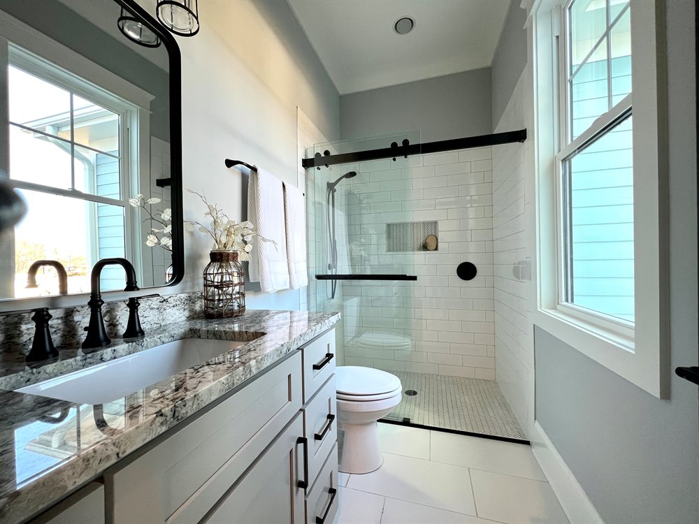 This Charleston-style home is truly stunning! With nearly 3,600 square feet, it offers an open and spacious layout. The two covered front porches and the screened-in outdoor living area with a fireplace are fantastic features that really enhance the overall charm of the home. The main floor’s high ceilings and large windows allow an abundance of natural light to fill the space. The Great Room with the option for a gas or electric fireplace must create such a cozy atmosphere, and the doors to the outdoor living space are an amazing touch for seamless indoor-outdoor living. The chef’s kitchen is a dream with the large island and a full walk-in Butler’s pantry. The first-floor Master Suite with vaulted ceilings and beams offers a luxurious retreat, and the ensuite bathroom with a standalone tub and tile shower is perfect for unwinding. The second suite on the first floor gives extra privacy and comfort for guests or family. Upstairs, the large recreation room or flex space offers endless possibilities for how it can be used, and the two additional bedrooms, each with its own bathroom, make this home ideal for a growing family or visitors.