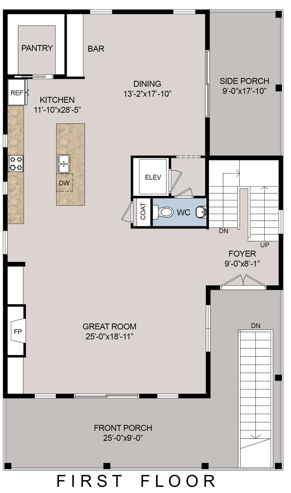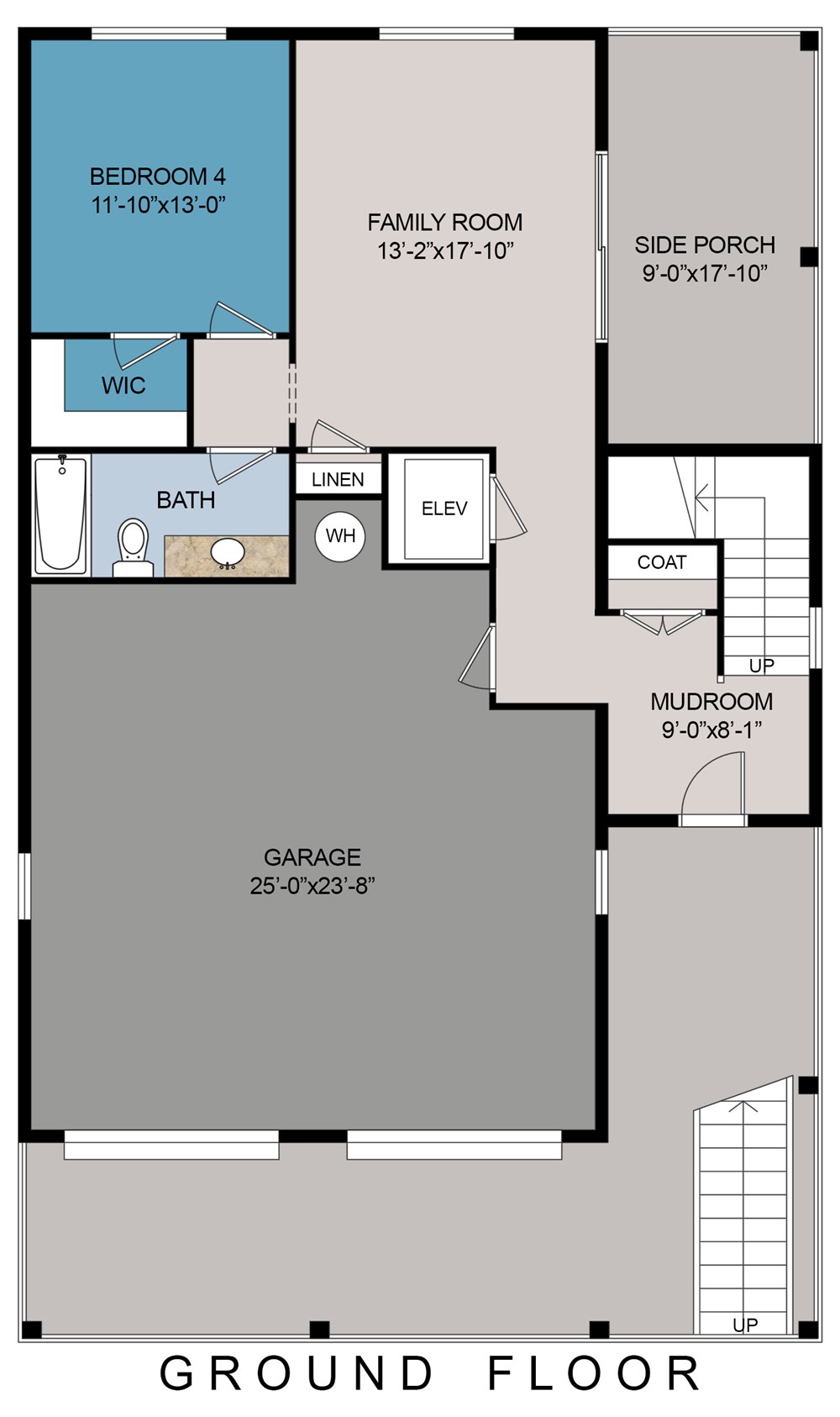 The Indigo Cottage is designed for both comfort and versatility. The open floor plan includes spacious porches, perfect for relaxation and outdoor living. On the ground floor, you’ll find a family room, a bedroom with a full bath, and a private entry, making it ideal for guests or multigenerational living. The main level features a bright great room that flows seamlessly into a well-appointed kitchen and dining area, complete with a coffee bar and access to a private rear deck—perfect for morning coffee or evening gatherings. Upstairs, the tranquil second floor offers a master suite and two additional bedrooms sharing a bath, providing a cozy retreat for family or guests. For added convenience, there’s also the option for an elevator, enhancing accessibility throughout the home. This thoughtful design makes Indigo Cottage a welcoming and functional space for all.