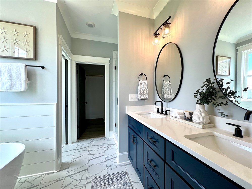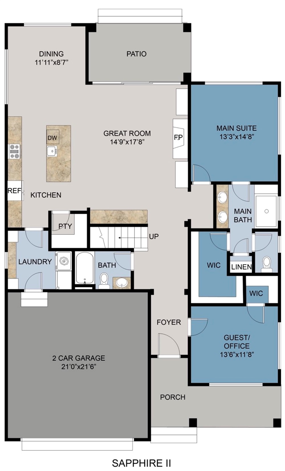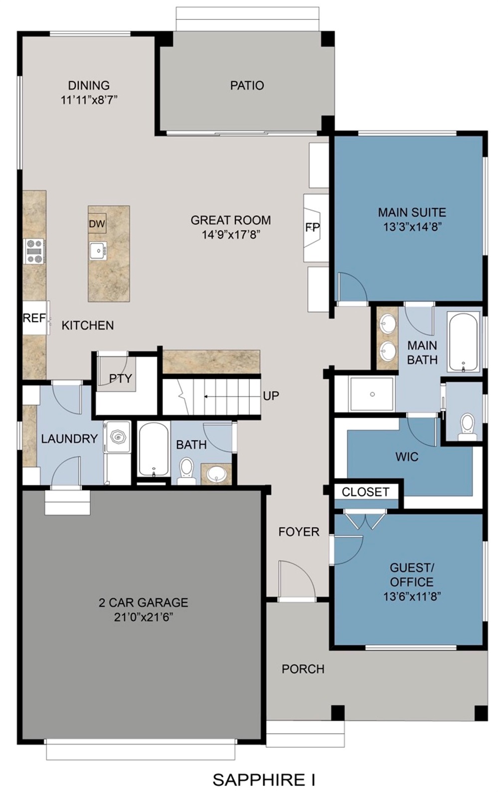 Welcome to the Sapphire! This bright, open coastal floor plan boasts 9' ceilings and the convenience of single-level living. The heart of the home is a large, custom-designed kitchen with a pantry, seamlessly connecting to the living room and formal dining area, which is adjacent to the rear patio—perfect for entertaining. The main suite offers a a luxurious walk-in shower, and a soaker tub for relaxation or choice of bath layouts for personalized comfort, along with an office or guest suite and a dedicated laundry room for added convenience. Upstairs, you'll find two additional bedrooms, a spacious bonus room, and a cozy loft, providing versatile space for family or guests making the Sapphire a truly inviting coastal retreat!