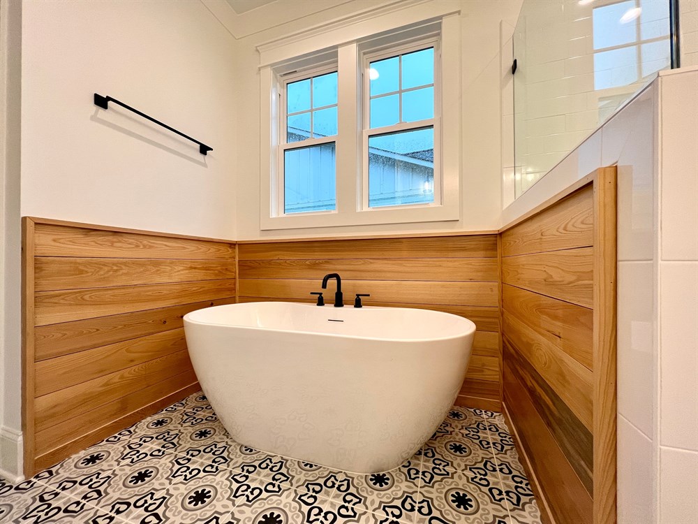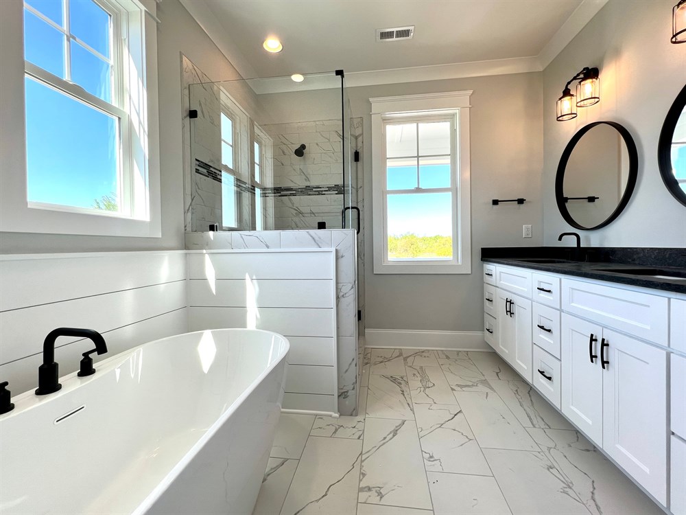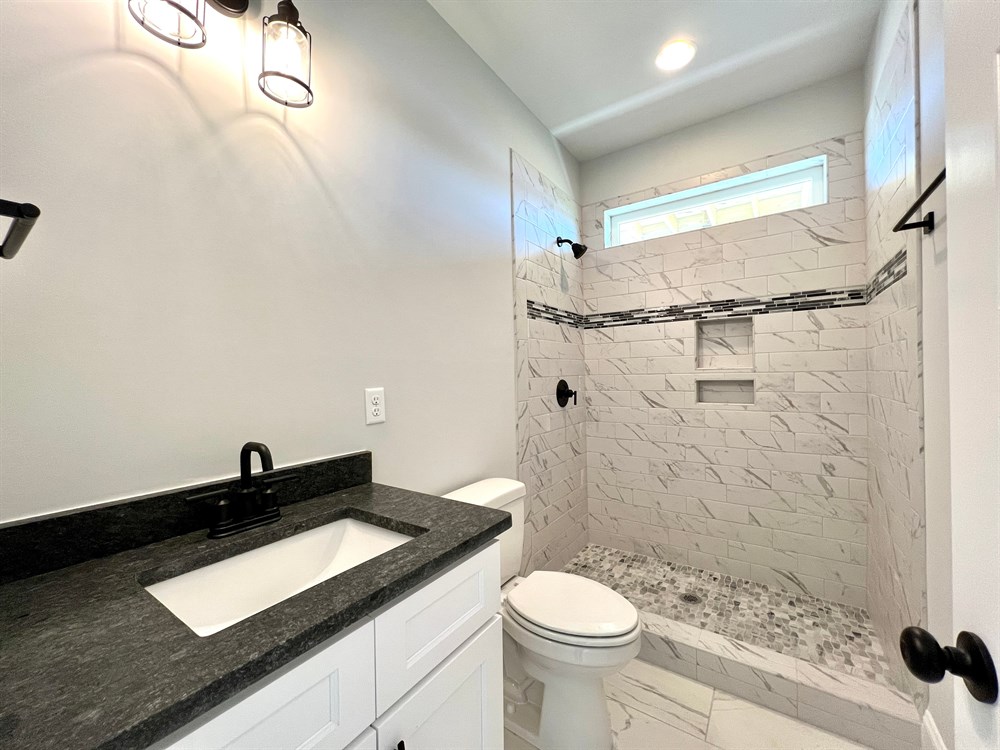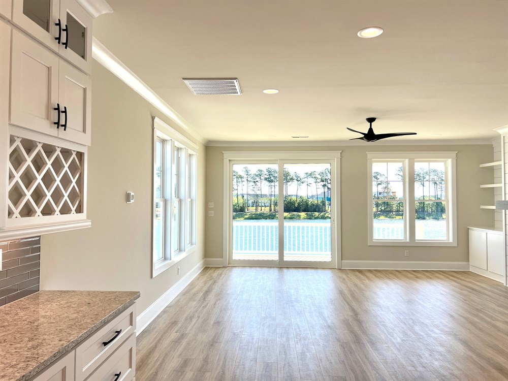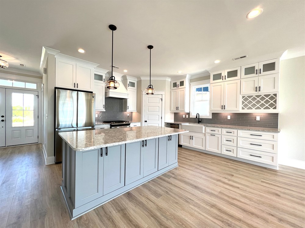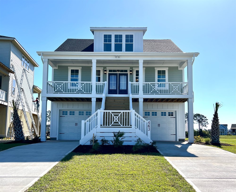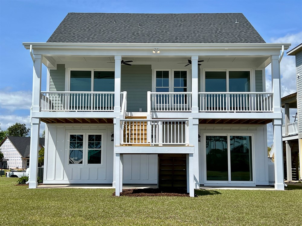 The Summerhouse is one of our most popular raised beach style house plans, with functionality and outdoor living in mind. Features include: a ground floor living area, bedroom and full bath; A master Suite on the main floor with a large custom designed kitchen, dining and living area adjacent to the rear deck. Upstairs are two additional bedrooms with a shared full bath and plenty of storage space. Additional features include a custom trim package, gas fireplace with built-ins, walk in shower, soaker tub and professional landscaping with irrigation.